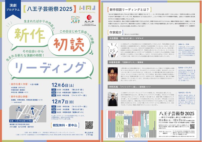 八王子芸術祭2025「新作初読リーディング」の企画制作/中村大地が新作を執筆しております